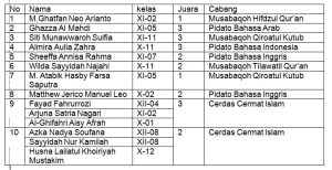 Salah satu peraih juara utama, M. Ghatfan Neo Arianto, menyampaikan rasa syukur atas prestasi yang diraihnya. “Alhamdulillah, saya sangat bersyukur bisa membawa nama baik SMA Darul Ulum 2 Unggulan BPPT melalui cabang Hifdzul Qur’an. Semua ini tidak lepas dari doa orang tua, bimbingan para guru dan dukungan teman-teman. Semoga prestasi ini menjadi motivasi bagi kita semua untuk semakin mencintai Al-Qur’an dan berprestasi dalam bidang lain,” ujarnya dengan penuh semangat.