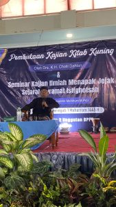 Setelah sambutan diberikan, pembacaan sholawat masih tetap dibacakan hingga berganti dengan Sambutan dari ketua panitia yaitu Faragus Ali Hasan. Singkat cerita rangkain acara selanjutnya yakni pemaparan kajian Ilmiah yang dibawakan Oleh KH Ishomuddin, beliau rawuh di GSG perkiraan jam 10.45