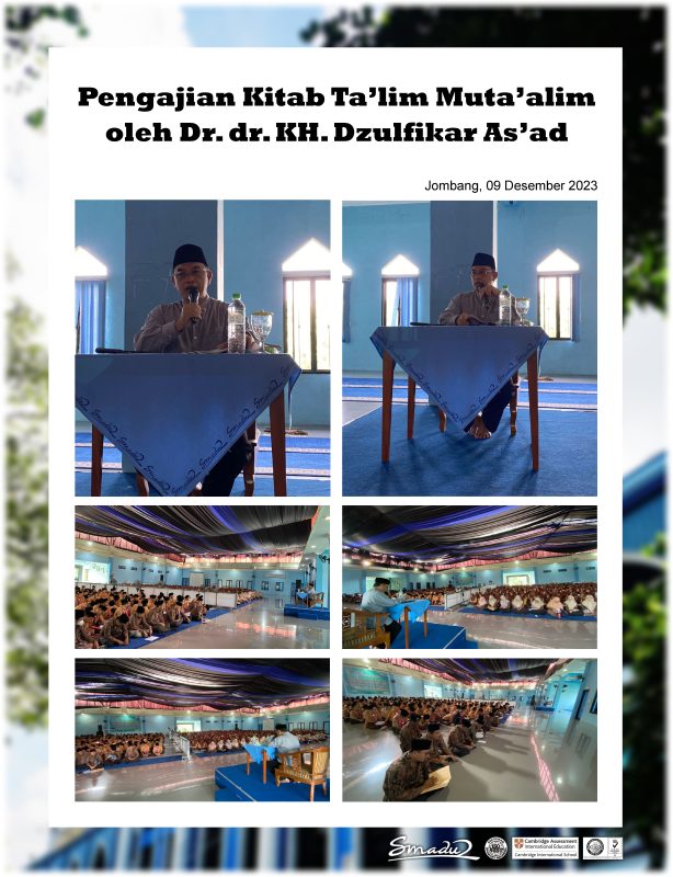 Selasa, 09 Desember 2023 SMA Darul Ulum 2 Unggulan BPPT seluruh civitas menikuti kegiatan pengajian kitab rutin yaitu kajian kitab “Ta’lim Muta’alim”. Kajian Ta’lim Muta’alim ini dinarasumberi oleh beliau Dr. dr. KH. Dzulfikar As’ad dengan materi tentang kesungguhan dalam belajar, ketekunan dan cita-cita. Orang itu jika ingin menggapai cita-cita harus bersemangat dan bersungguh-sungguh. Modal paling pokok ialah kesungguhan. Segala sesuatu bisa dicapai asal mau bersungguh-sungguh dan bercita-cita luhur. Bersungguh sungguhlah dalam belajar maka Allah SWT akan memberikan Jalannya, sebagaimana Firman Allah SWT