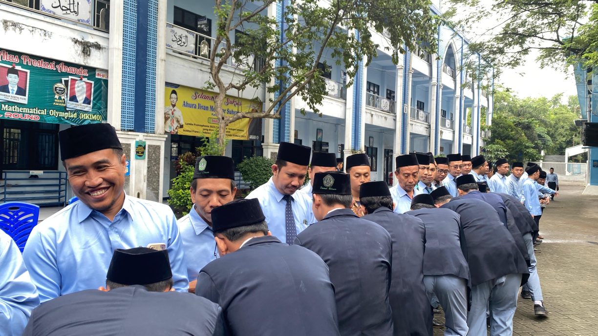 Diakhiri acara Halal Bi Halal Siswa/ Siswi Bersalaman kepada Bapak/Ibu Guru dan Teman Sebaya.