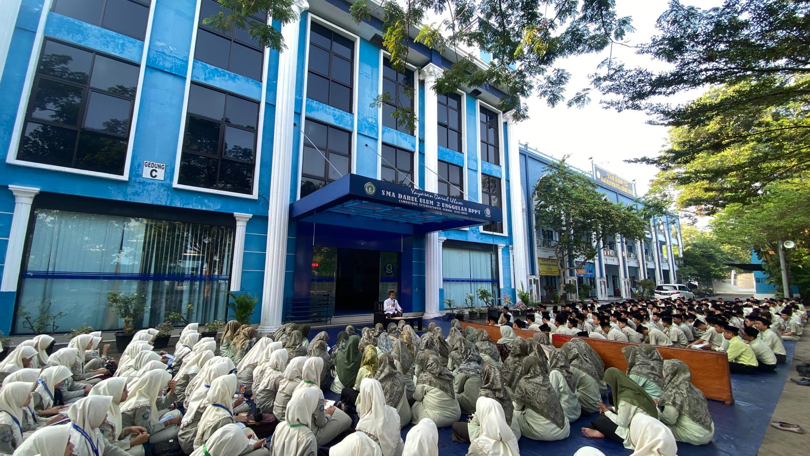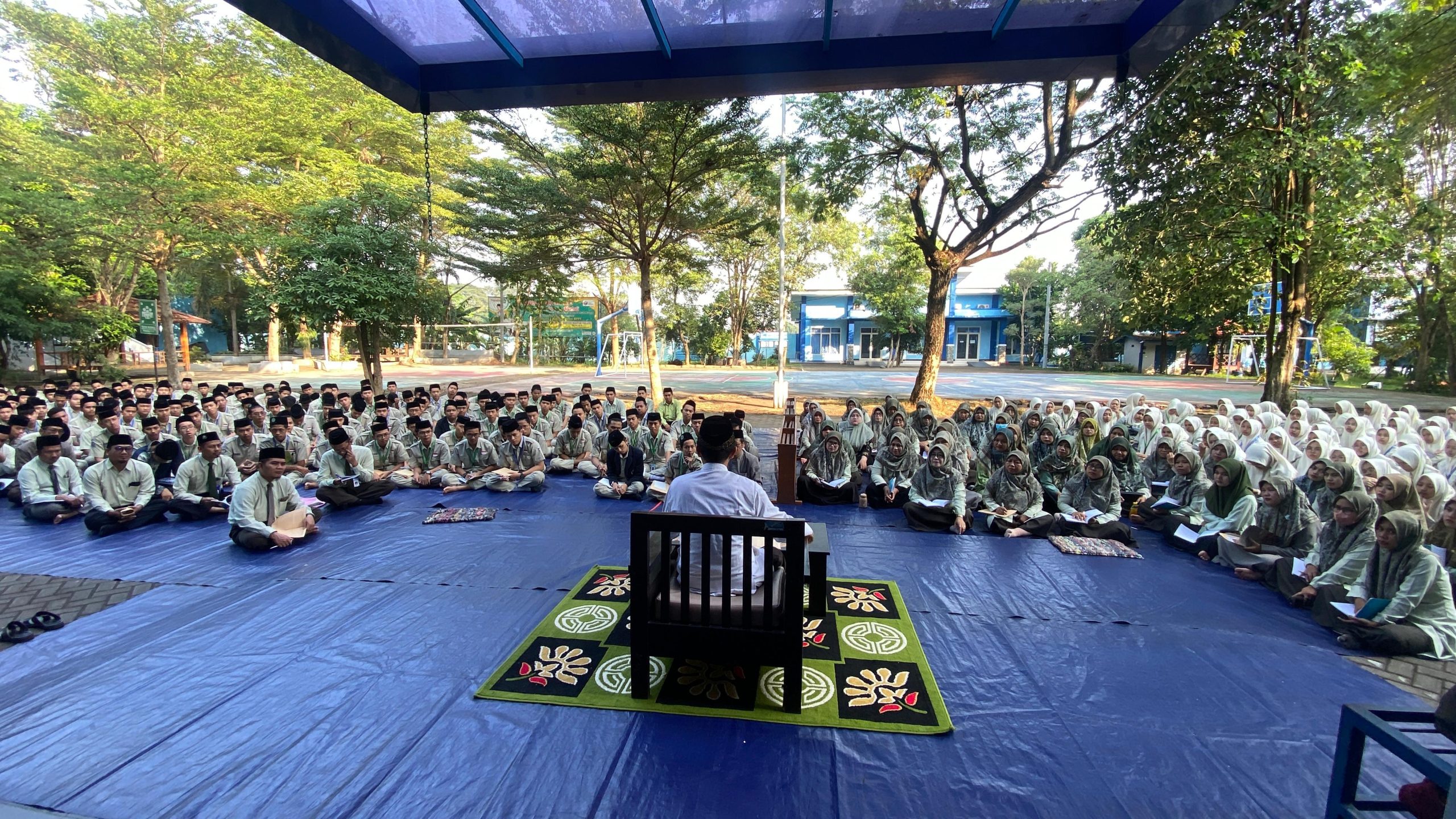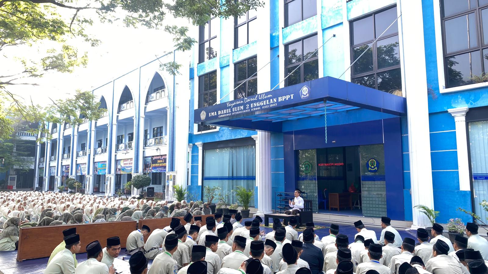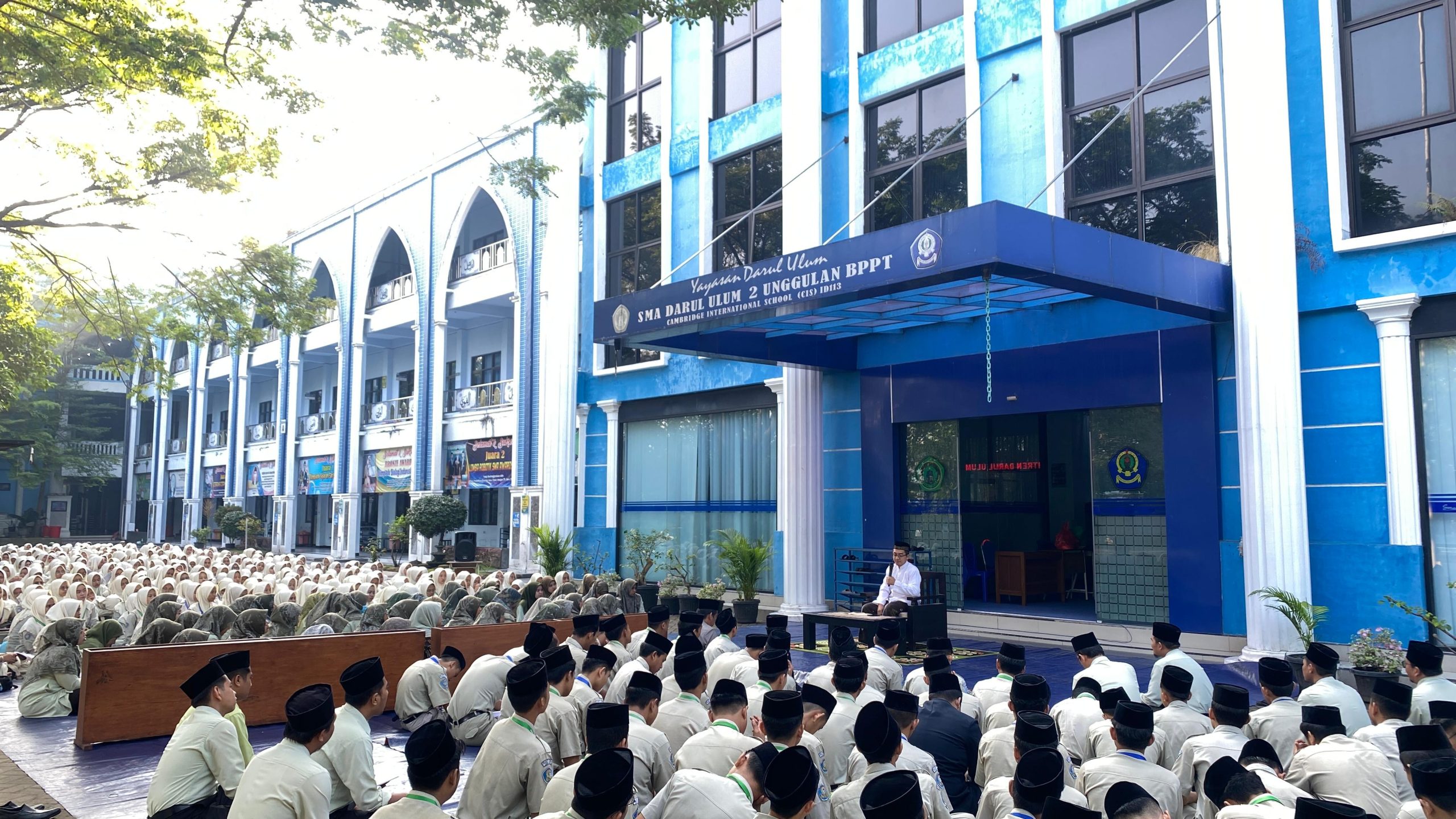 Rabu, 12 Juni 2024 pengajian rutin SMA Darul Ulum 2 Unggulan BPPT menyelenggarakan kegiatan Kajian Ta’lim Muta’alim bersama Majelis Pimpinan Pondok Pesantren Darul Ulum bertempat dihalaman SMA Darul Ulum 2 Unggulan. Kegiatan Kajian Ta’lim Muta’alim yang ini disampaikan oleh “Dr.KH.Afifuddin Dimyati, Lc.MA”, menerangkan mengenai bab “Menyebabkan Hafal dan Lupa”. Ada beberapa hal yang beliau terangkan yaitu “Pada zaman para sahabat bukan generasi penulis namun generasi penghafal, jadi diharapkan para santri ketika mondok yang dibutuhkan yaitu hafalan, sebab hafalan adalah hal yang dibutuhkan dalam menuntut ilmu.”