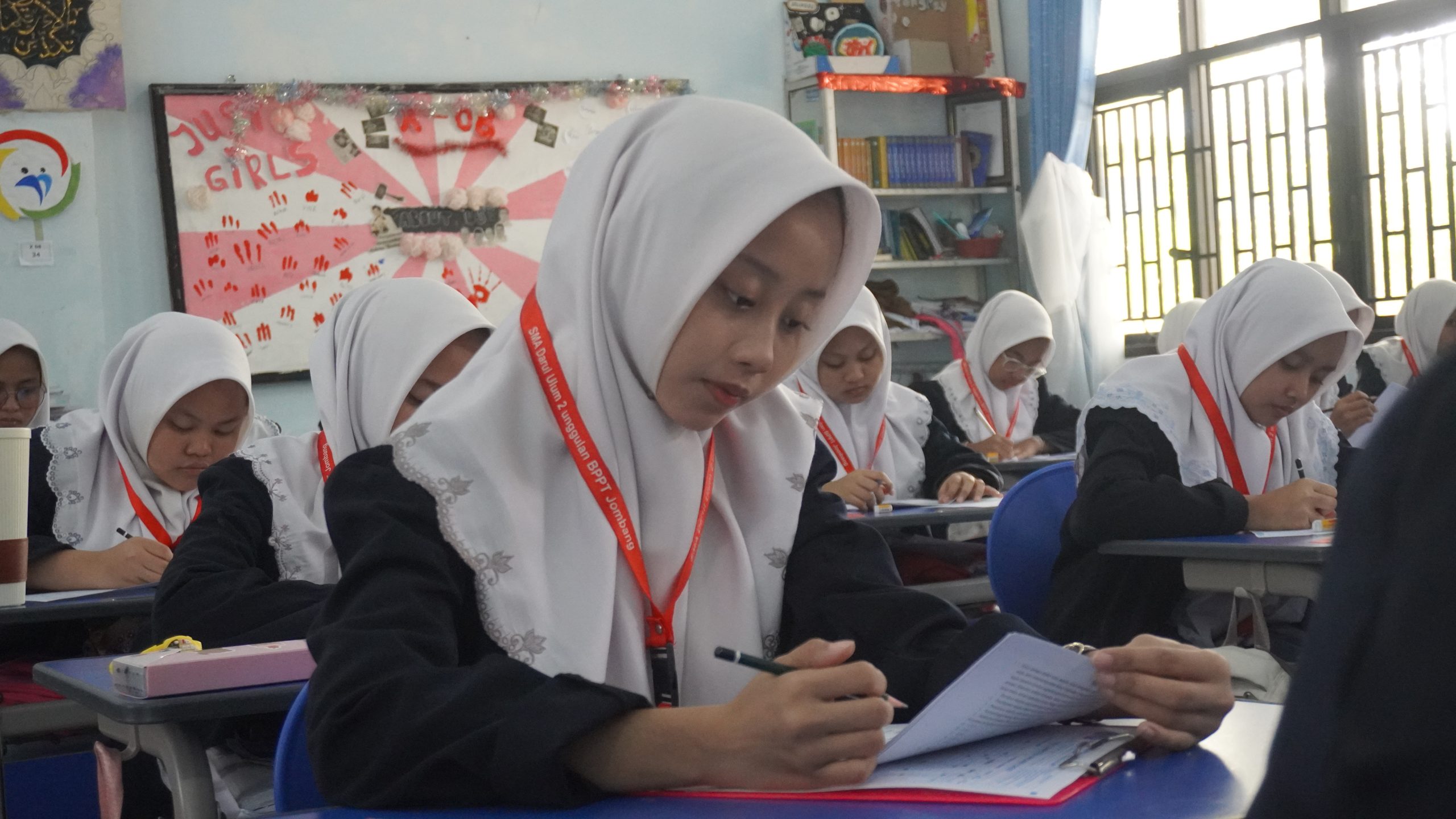 Ia juga menyampaikan bahwa suasana ujian yang disiplin namun tetap tenang membuatnya bisa fokus mengerjakan soal.
