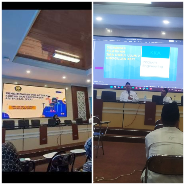Sebanyak 49 guru dari SMA Darul Ulum 2 Unggulan BPPT mengikuti kegiatan Desiminasi Pelatihan Koding dan Kecerdasan Artificial (KKA) yang diselenggarakan pada Kamis, 7 Agustus 2025. Kegiatan ini berlangsung di Ruang Meeting, Gedung E lantai 3, mulai pukul 14.15 hingga 15.45 WIB. Program ini bertujuan untuk memperkenalkan konsep dasar pemrograman dan kecerdasan buatan kepada para pendidik guna meningkatkan literasi digital di lingkungan sekolah.
